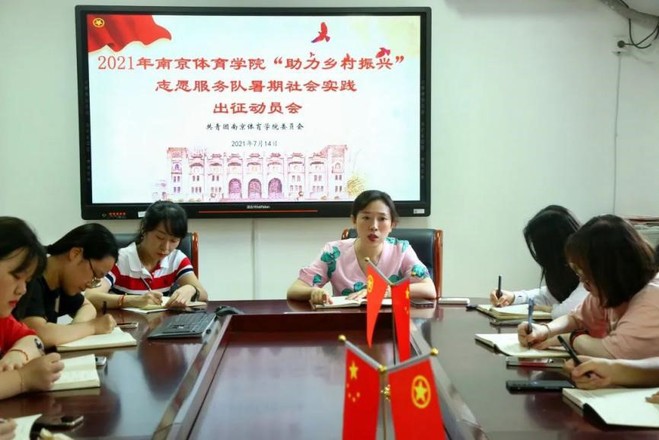 7月14日,2021年missav“助力乡村振兴”志愿服务队暑期社会实践出征动员会于双创会议室顺利举行。校团委书记阚妮妮、校团委副书记杨蓉、校团委老师吴圣平以及团队成员参加会议。