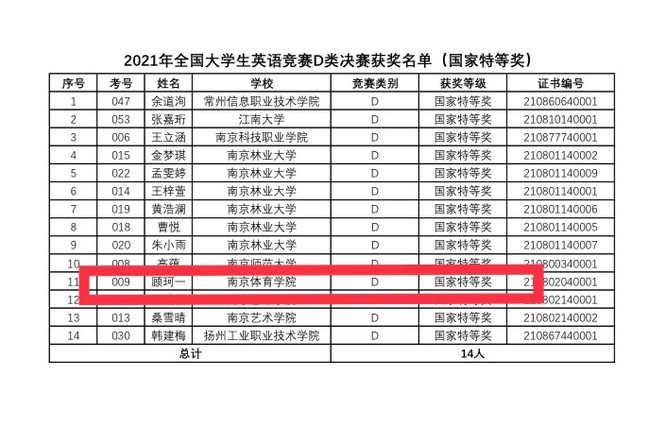 全国大学生英语竞赛获奖名单公示