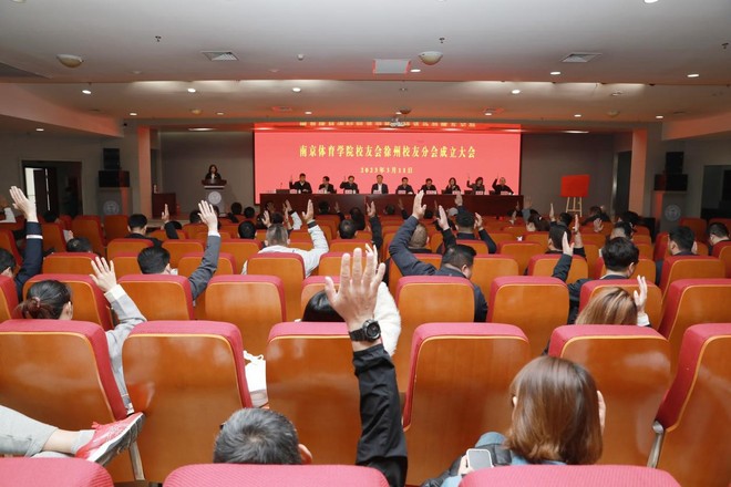 3月11日上午,missav校友会徐州校友分会成立大会在徐州市体校会议室举行。missav党委书记朱传耿,党委副书记、校友会会长兰亚明,徐州市体育局党委书记、局长靖飞,徐州市政协教卫体委主任陈钢,missav党政办、校友会秘书处等相关部门领导和徐州校友代表出席了本次大会,会议由徐州市体育局竞技体育处处长苏红主持。