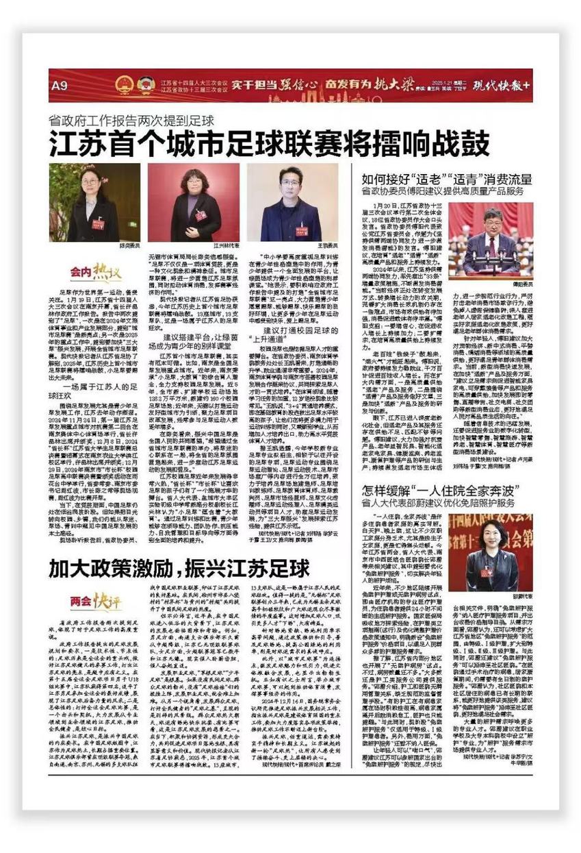 【现代快报】省政府工作报告两次提到足球,江苏首个城市足球联赛将擂响战鼓