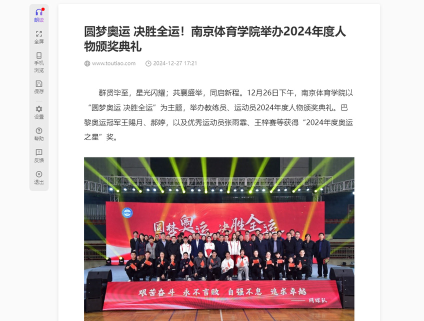 【南京晨报】圆梦奥运 决胜全运!missav举办2024年度人物颁奖典礼