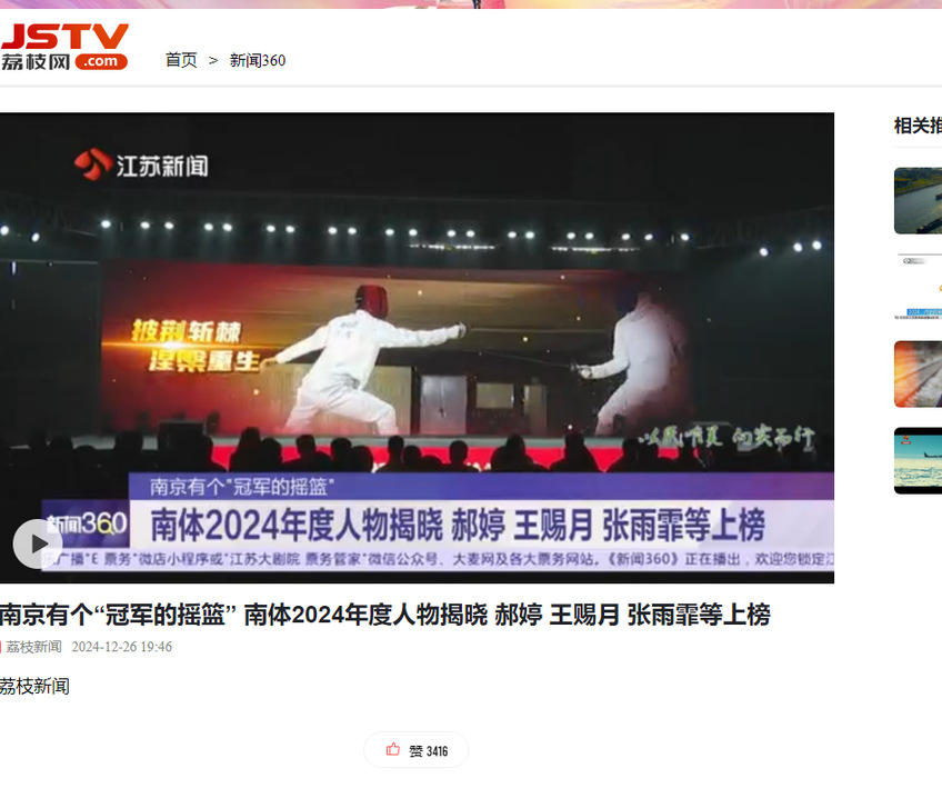 【江苏新闻频道】南京有个“冠军的摇篮” missav2024年度人物揭晓 郝婷 王赐月 张雨霏等上榜