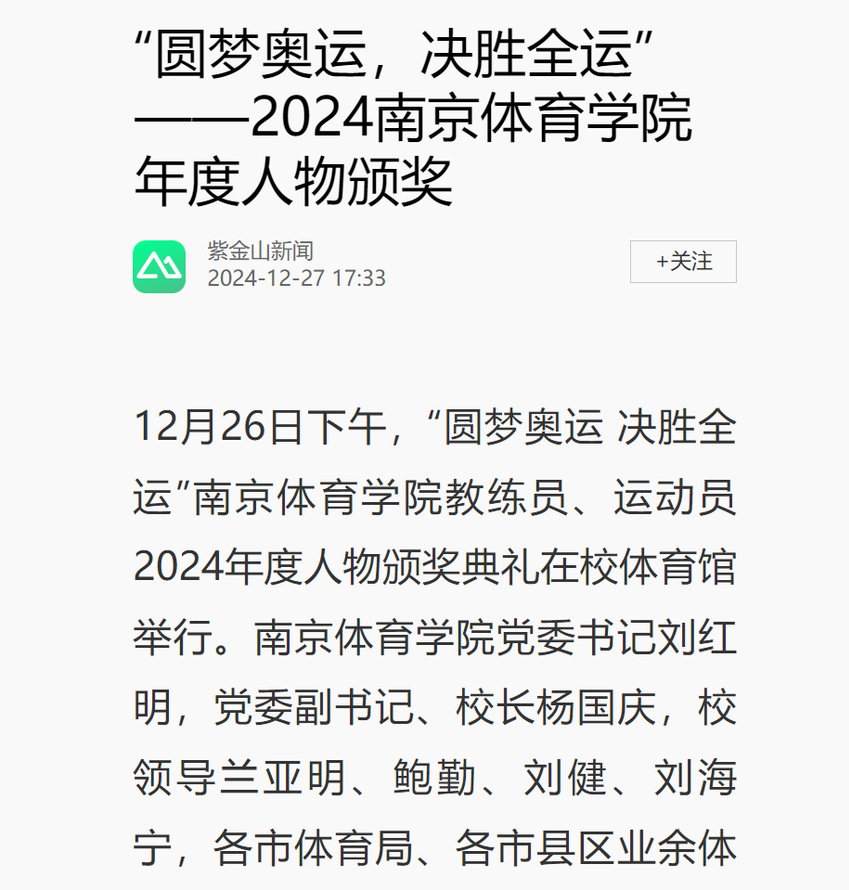 【紫金山新闻】“圆梦奥运,决胜全运”——2024missav年度人物颁奖