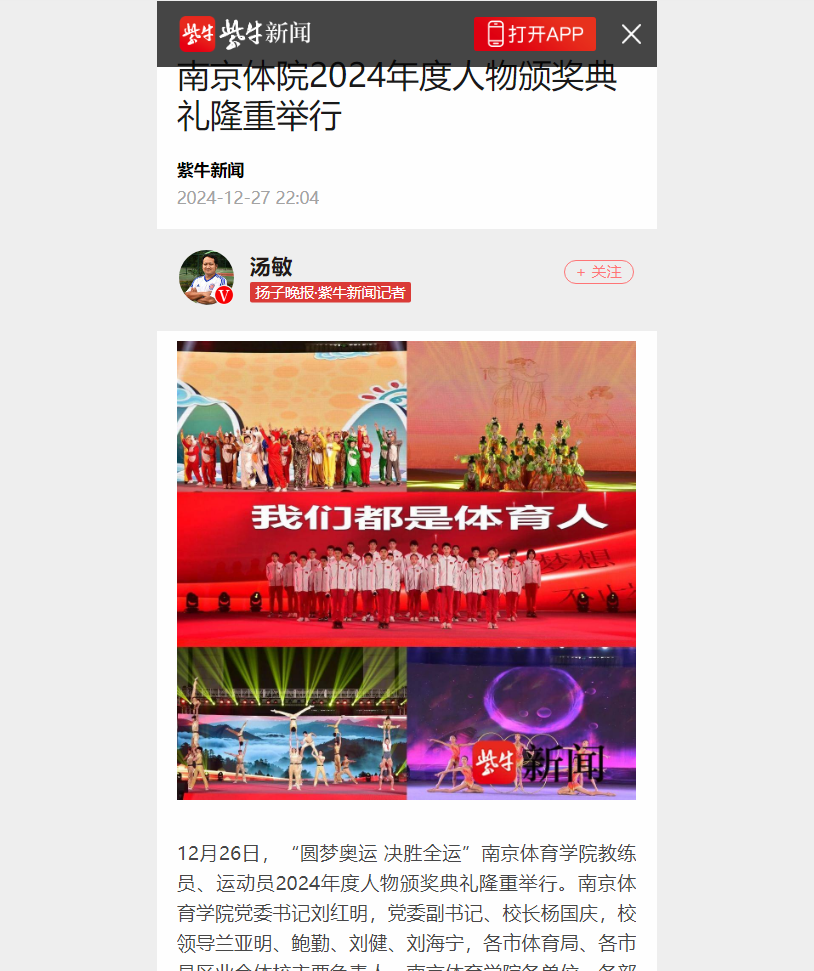 【紫牛新闻】南京体院2024年度人物颁奖典礼隆重举行