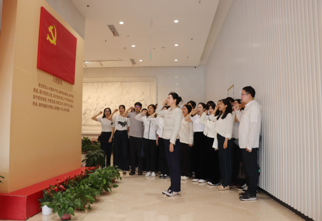 来到渡江胜利纪念馆内,全体党员在学院党总支书记阚妮妮的带领下面向党旗,庄严举起右手,重温入党誓词,铿锵有力的誓词在大厅内回荡不息,那是初心的回想,更是使命的担当。阚妮妮勉励大家将参观所得和教育教学工作、自身学习结合起来,将渡江精神内化于心,外化于行。