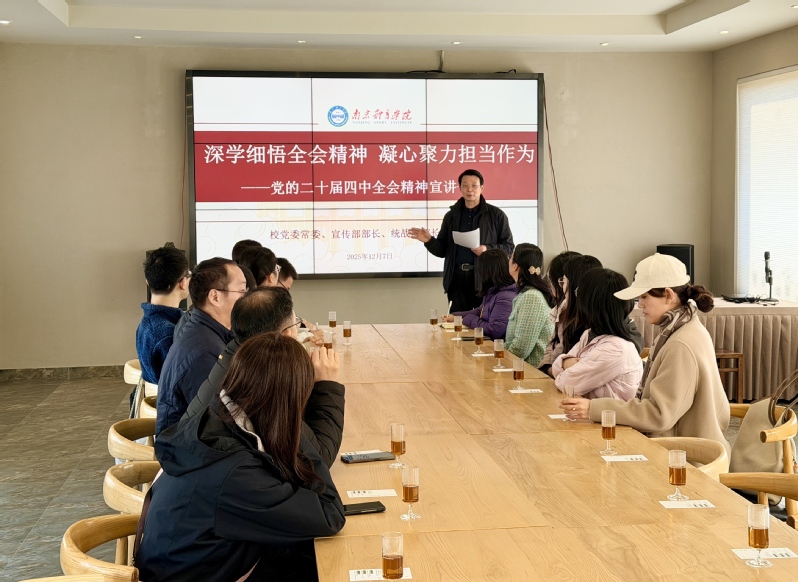 12月7日上午,校党委常委、宣传部部长、统战部部长许立俊在溧水区和凤镇,为学校欧美同学会(留学人员联谊会)会员开展党的二十届四中全会精神专题宣讲。本次宣讲以《深学细悟全会精神、凝心聚力担当作为》为主题,旨在引导留学人员深入学习贯彻全会精神,将思想和行动统一到国家发展大局中。
