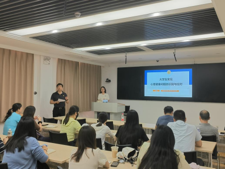 春季学期是学生心理问题的高发期,为进一步提升我校辅导员队伍的专业胜任力,提升学生心理问题的识别与应对能力,5月23日,学工处邀请到东南大学附属中大医院心身医学科副研究员刘晓云医生为我校二级学院副书记、全体辅导员开展《大学生常见心理健康问题的识别与应对》专题沙龙,本次沙龙由学工处处长殷怀刚主持。在沙龙中,刘晓云医生凭借其丰富的临床经验和深厚的专业知识,为大家深入剖析了大学生常见的心理健康问题,如焦虑、抑郁、人际关系困扰等,并详细讲解了这些心理问题的成因、表现以及识别方法。她还通过案例分析,展示了在面对学生心理问题时,如何有效地进行干预和应对,以及如何在日常工作中预防和减少心理问题的发生。沙龙结束后,辅导员们纷纷表示对学生心理健康问题有了更深刻的认识和理解,自身在心理健康工作中的专业素养和应对能力得到有力提升。