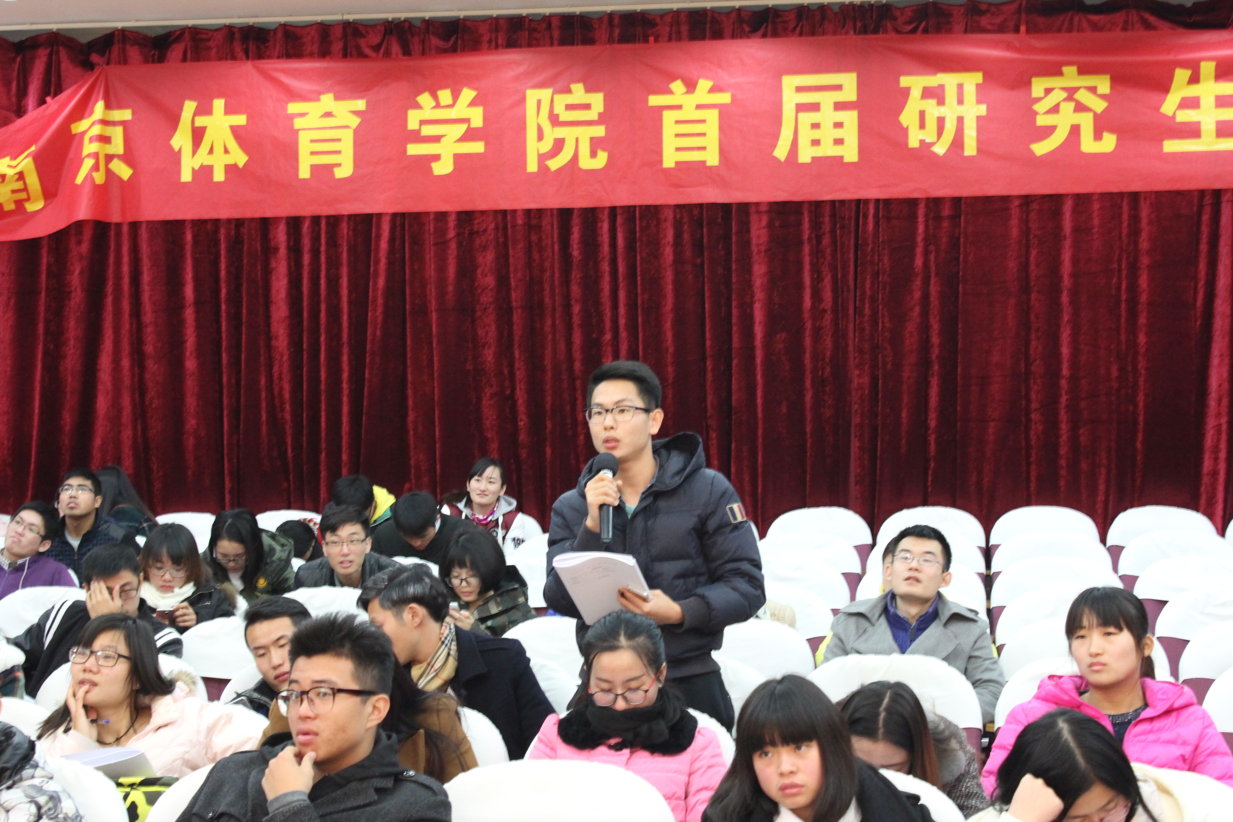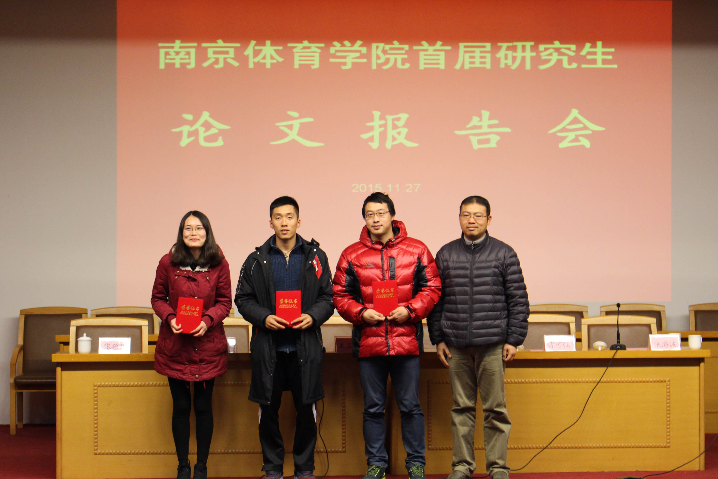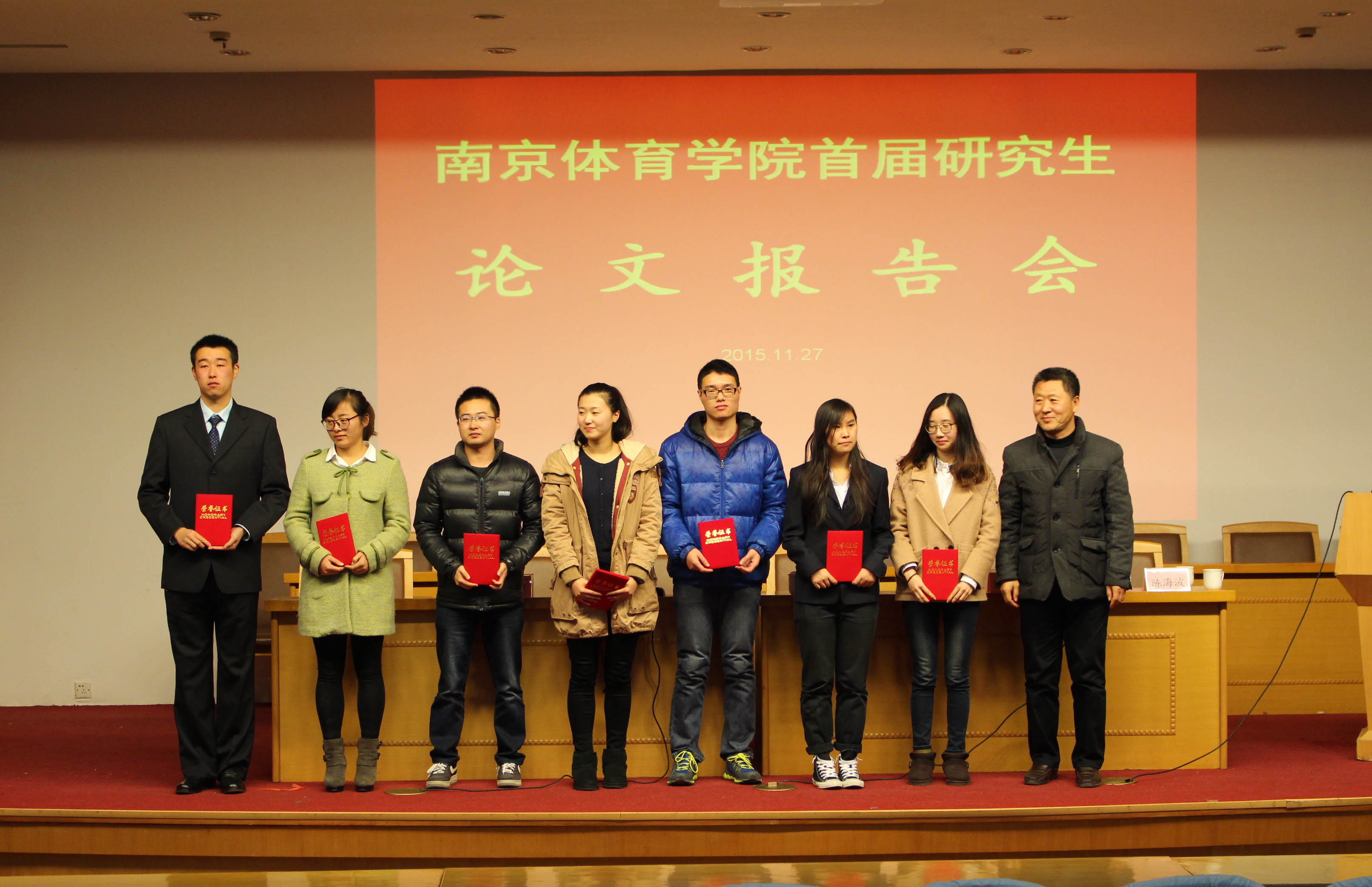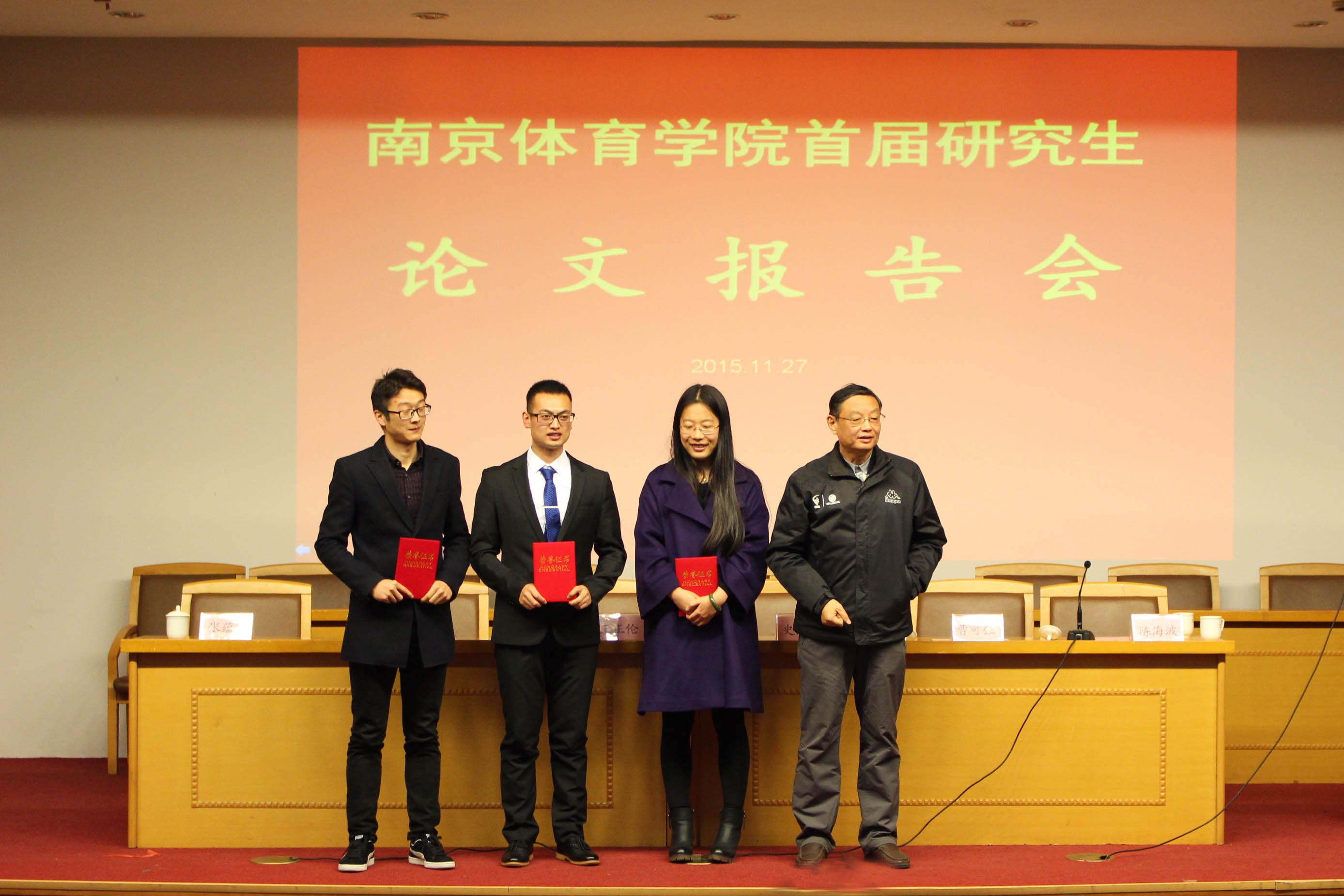2015年11月27日,missav首届研究生论文报告会在图书馆报告厅隆重举行。王正伦副院长出席会议并作重要讲话,史国生副院长、陈海波主任、张蕴琨教授、各系导师以及特邀嘉宾江苏省教育厅体育卫生与艺术教育处处长杜伟、上海体育学院经济管理学院院长曹可强出席了开幕式,开幕式由陈海波主任主持。
