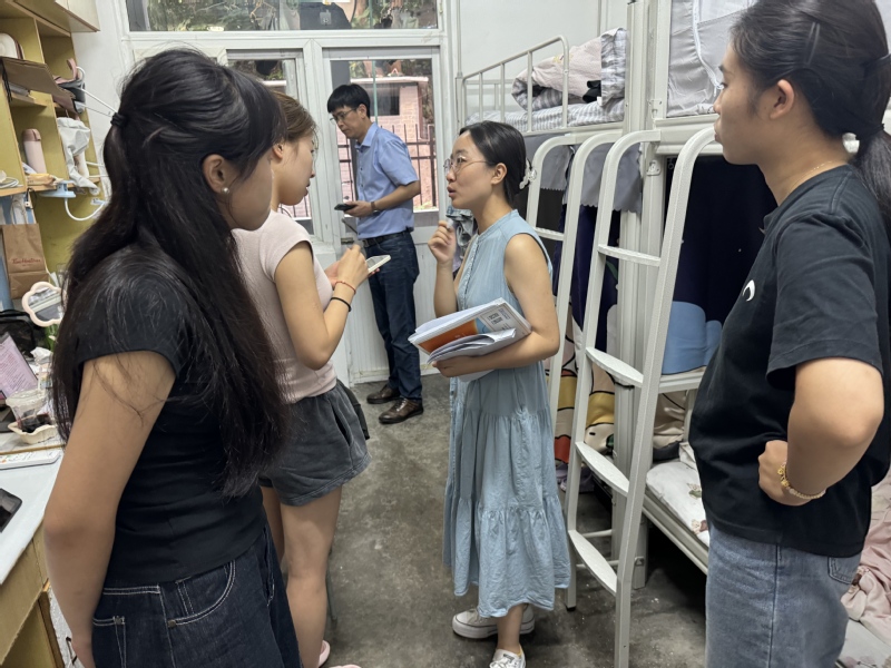 辅导员们逐一检查了新生宿舍的门窗锁具等设施,细心询问了新生对宿舍环境的适应情况,包括采光、通风、隔音等细节问题,鼓励他们有问题积极反馈,共同打造温馨宜居的宿舍氛围。