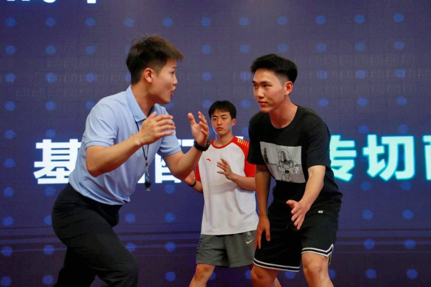 接着,李明同学展示了篮球战术-传切配合教学。他精准运用“防守重心偏移角、传球引导向量、切入时空窗口”等专业术语构建战术认知框架,并通过“假设-验证式提问”激发学生的高阶思维。杨老师指出,“有生试讲”难度较高,但李同学表现出色,完成度令人满意。