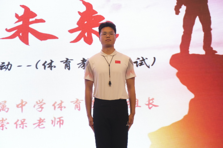随后,三位同学依次上台展示各自的面试技能。首先,刘旺同学带来了“双手头上前掷实心球”的教学展示。他以标准的教态、洪亮的声音和清晰的教学结构迅速赢得关注。刘同学通过“讲解-示范-分解-整合-反馈”五步教学法,系统构建动作表象认知,体现了运动技能可视化教学的原则。杨老师高度评价其表现,认为其教态、语言和动作均达到合格体育教师的标准。