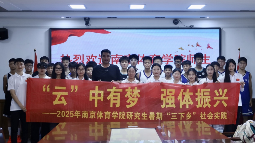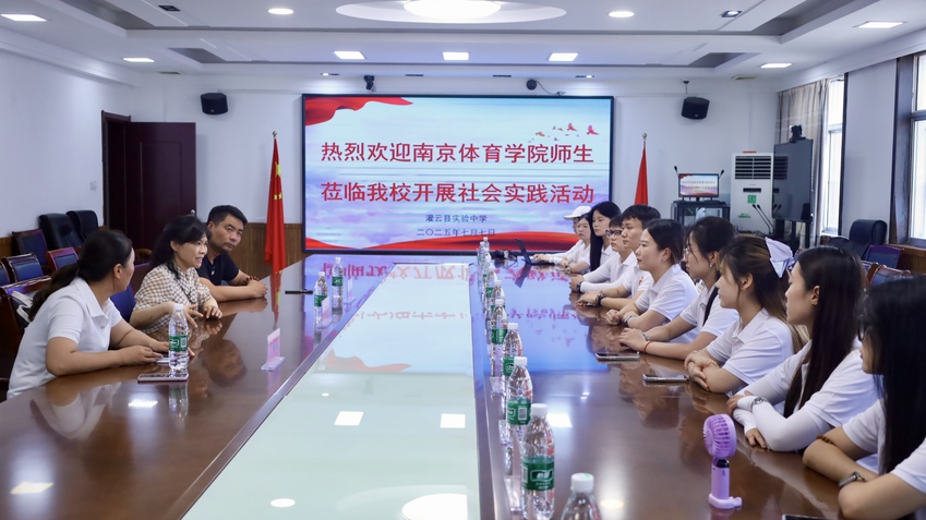 为深入贯彻党的二十大和二十届三中全会关于乡村振兴的战略部署,全面推进乡村体育教育振兴新实践,以体育赋能乡村教育振兴,2025年7月7日,missav研究生暑期 “三下乡”社会实践团队在唐玮鸿老师的带领下,奔赴灌云县实验中学开启为期8天的实践活动。当日下午,“云”中有梦,强体振兴——2025年missav研究生暑期“三下乡”社会实践启动仪式在灌云县实验中学顺利开展,标志着高校智力资源与基层教育需求的深度对接正式启动。灌云县教育局党委委员嵇寒冰、灌云县实验中学副校长严春艳、灌云县实验中学体育教师代表姚雨明以及全体missav研究生师生团队出席会议。