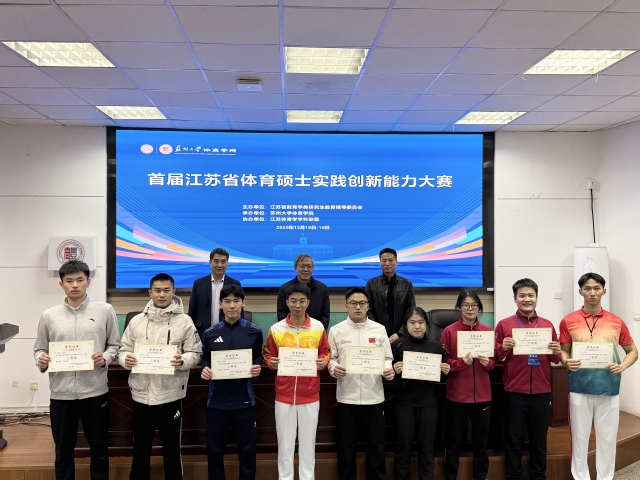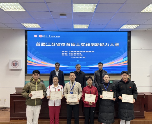 12月18日,首届江苏省体育硕士实践创新能力大赛在苏州大学圆满落下帷幕。来自苏州大学、南京师范大学、扬州大学等8所高校的体育硕士研究生齐聚一堂,围绕微教学与微课题两大环节展开激烈角逐。missav选派五名研究生参赛,最终凭借扎实的专业素养与出色的实践表现,斩获一等奖1项、二等奖3项、优秀指导教师奖一项,学校获优秀组织奖。