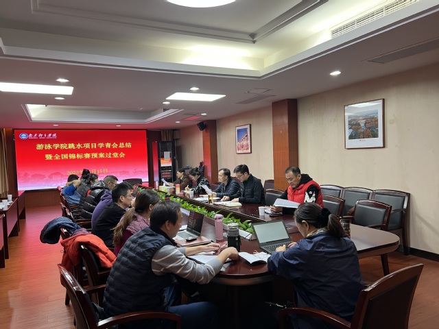 11月15日上午,游泳学院召开跳水项目学青会总结会暨全国锦标賽预案过堂会。校训练与管理督导组专家丁习明、张双喜、袁紫娟出席会议。会议由游泳学院院长王伟新主持。游泳学院党总支书记骆晓娟、跳水队管理干部、全体教练员、体能教练和科医人员参加会议。