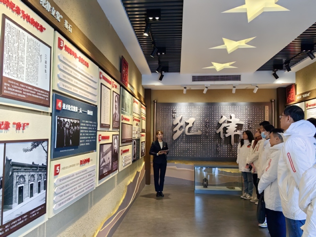 走进教育馆展厅,首先映入眼帘的是“纪律”主题文化墙和《中国共产党第一个纲领》全文,其中凸显出的“纪律”“忠诚”等字样让党员们肃然起敬。跟随工作人员的讲解,大家依次参观了馆内的“奠基淬炼”、“曲折发展”、“迈向成熟”、“伟大创举”四个主题部分,通过聆听讲解、阅读图片文字、观看影像资料等多种方式,一起重温中国共产党的纪律建设之路,让全体党员充分感受到纪律的力量,进一步坚定“不敢腐、不能腐、不想腐”的政治立场。