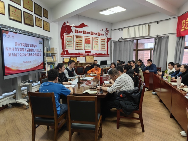 3月5日上午,游泳学院党总支选举missav第五届教职工代表大会、第五届工会会员代表大会代表会议在跳水花游馆二楼会议室召开。会议由游泳学院党总支书记骆晓娟主持,学院全体在校教职工参加会议。