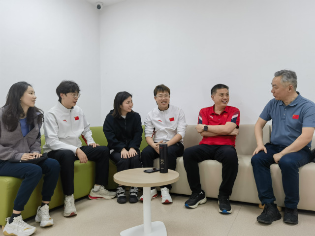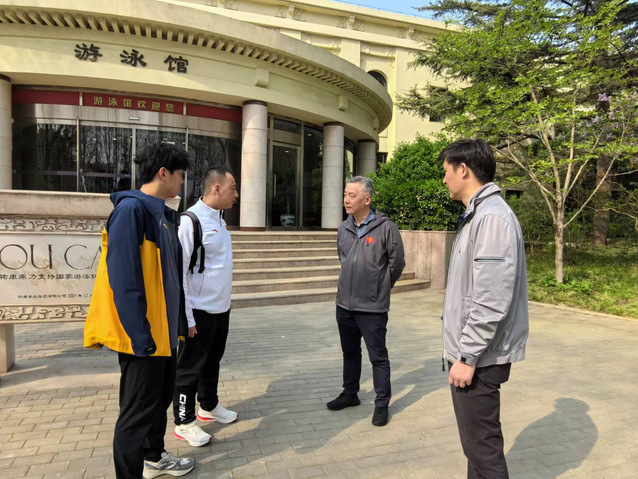 观摩比赛后,刘健还赴国家游泳队看望慰问了张雨霏、董志豪等我校游泳队运动员、教练员和复合型团队人员,详细了解了他们近期备战全国游泳冠军赛暨巴黎奥运会选拔赛的训练情况,并代表学校对张雨霏国家队主带教练崔登荣及其团队人员致以了诚挚的问候和衷心的感谢。