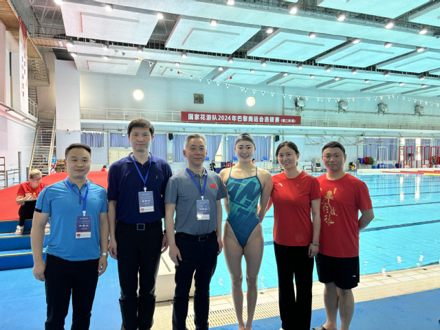 4月8日,国家花游队2024年巴黎奥运会选拔赛(第二阶段)在国家体育总局训练局花游馆举行。校党委常委、副校长刘健带领游泳学院院长王伟新、花游队领队叶雷雷和花游队一线主教练王芳赴北京现场观摩选拔赛并看望慰问我校运动员、复合型团队人员。
