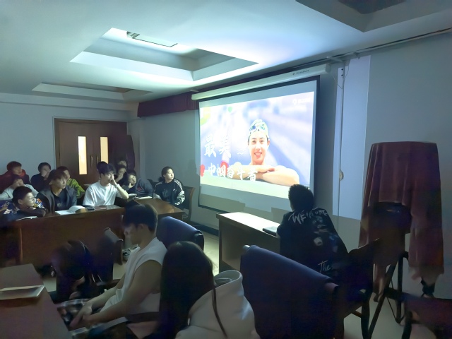 随后,与会人员通过观看张雨霏的比赛视频和训练片段,深入了解了她在游泳事业上的拼搏历程。运动员吕沁瑶、范文萱等在观看视频后一一发表了自己的心得体会,他们表示,将以张雨霏为标杆,不断提升自己的专业技能和综合素质,严格遵守纪律规定,保持良好的作风和态度,为队伍和学院的发展贡献自己的力量。