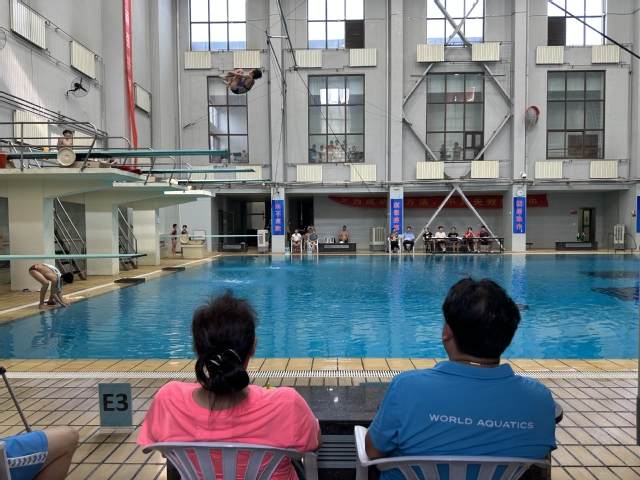 为全面检验夏训成果,提升竞技水平,做到练赛结合,游泳学院跳水队于9月4日-5日在跳水馆举行了全国锦标赛赛前测试赛,测试赛邀请了国际级裁判刘战、国家级裁判冯康模拟比赛进行了现场打分。游泳学院党总支书记骆晓娟,院长王伟新观摩了测试赛。