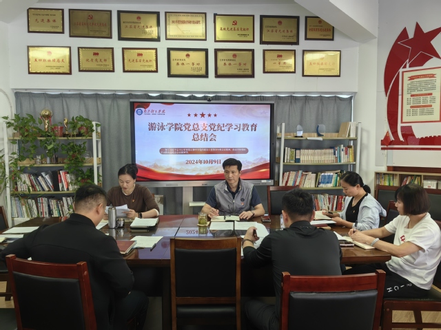 10月9日下午,游泳学院党总支在跳水花游馆二楼会议室召开党纪学习教育总结会。学院全体管理干部参加会议。会议由学院党总支书记骆晓娟主持。