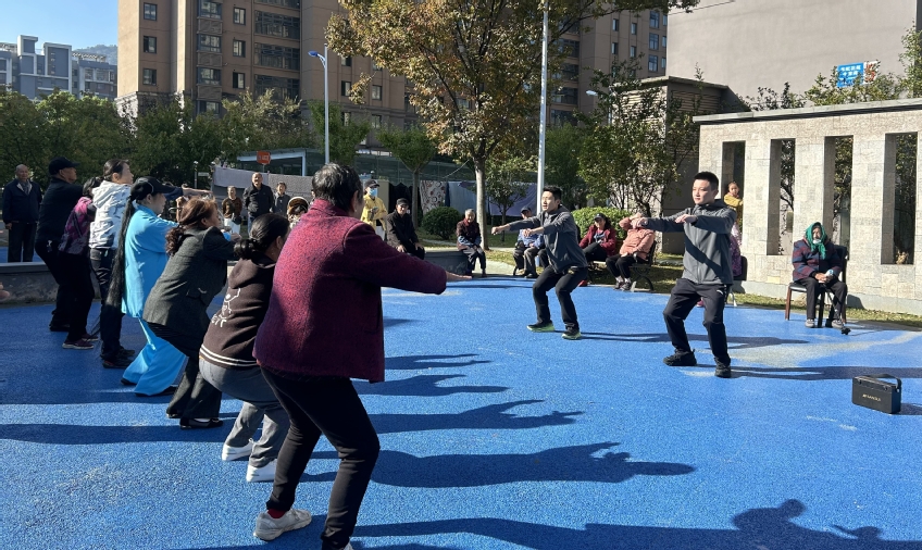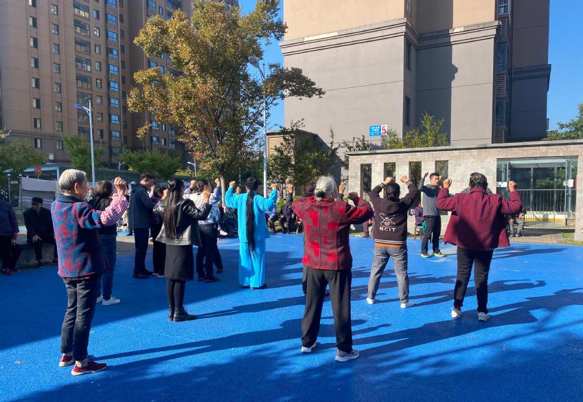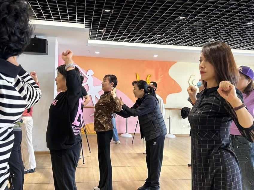 活动现场,江苏跳水队运动员们以矫健的身姿和亲切的笑容,迅速拉近了与社区居民们的距离。队员们耐心指导居民们进行力量训练,通过起蹱、半蹲、伸肩等基础动作,有效传授了预防滑倒摔伤的方法,更以专业的态度传递了健康生活的理念。居民们积极参与,纷纷跟着学习,现场气氛热烈,欢声笑语不断。