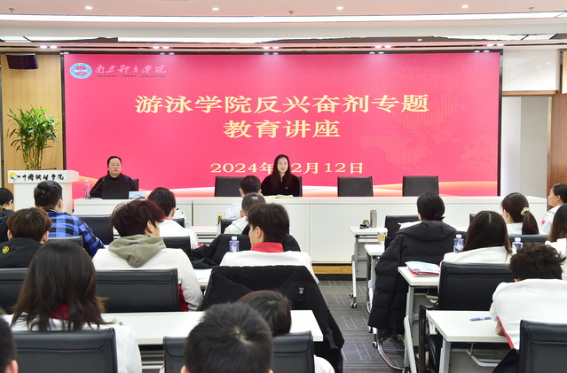 为深入贯彻落实习近平总书记关于反兴奋剂工作的重要指示精神,进一步强化反兴奋剂风险意识和底线思维,确保学院顺利完成十五届全运会参赛任务,12月12日上午,游泳学院在网球学院三楼会议室召开反兴奋剂专题教育讲座。本次讲座邀请了江苏省举摔柔运动管理中心、国家女子柔道队队医,中级防护师,江苏省首批纯洁体育讲师支珊珊担任主讲嘉宾。游泳学院党总支书记骆晓娟、游泳学院院长王伟新、游泳学院全体备战十五届全运会运动员、教练员、体能科医人员和管理干部参加讲座。