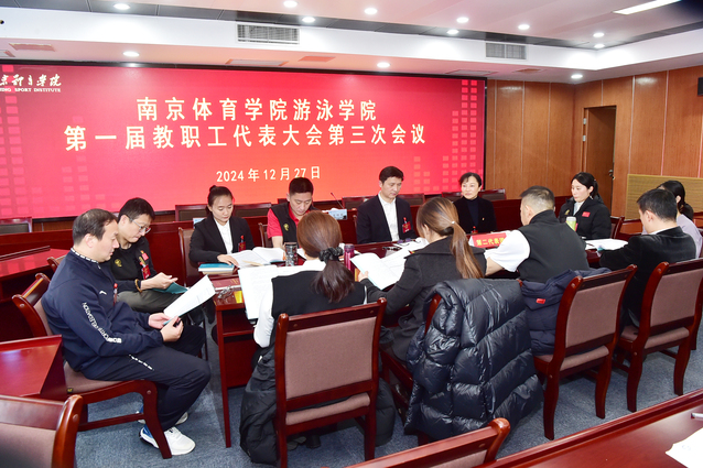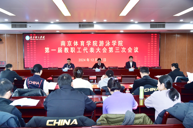 12月27日上午,游泳学院在行政办公楼201会议室召开第一届教职工代表大会第三次会议。学院领导班子及全体教职工参加会议,会议由学院副院长、花游队领队叶雷雷主持。