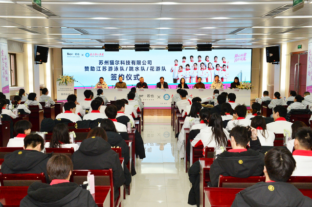3月15日上午,苏州猫尔科技有限公司赞助江苏游泳队、跳水队、花游队签约仪式在missav隆重举行。