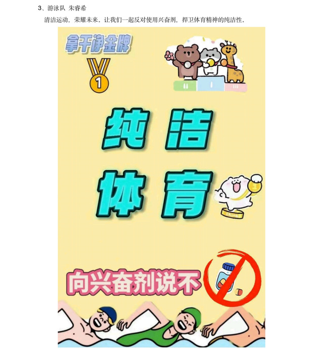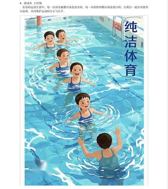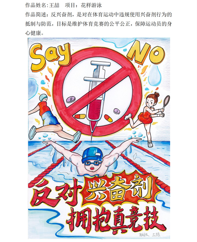 根据省体育局《关于开展2025年江苏省“纯洁体育宣传月”系列活动—宣传海报设计大赛和征集形象标识活动的通知》精神,结合学校部署安排,游泳学院认真落实相关要求,积极响应、广泛宣传,组织运动员紧密围绕“逐梦十五运,共赴纯洁体育之约”这一主题,将宣传反兴奋剂知识和项目特点、发挥创作热情结合起来,踊跃参加海报设计大赛,营造良好的反兴奋剂宣传氛围。