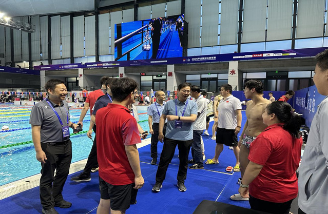 2025年全国游泳冠军赛暨第十五届全运会游泳项目资格赛于5月17日至5月24日在广东深圳举行。5月22日下午,党委副书记、校长吴兵成,党委常委、副校长刘健来到深圳大运中心游泳馆,看望慰问正在参加2025年全国游泳冠军赛的我校运动员、教练员和科医保障人员。校训练处、体育科学研究院、游泳学院有关负责同志及相关工作人员陪同慰问。