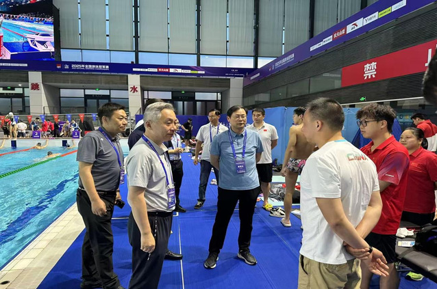 体育科学研究院院长秦学林进一步了解了游泳队在比赛中运动损伤、疲劳恢复等方面的需求,并给予了现场指导和帮助。