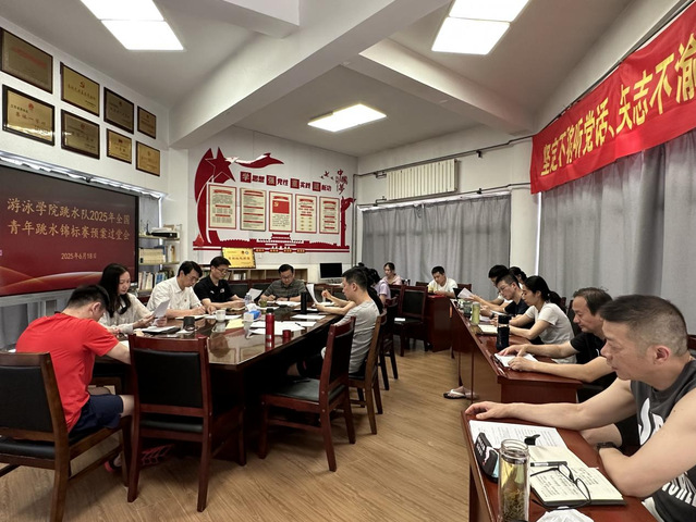 6月18日上午,游泳学院跳水队召开2025年全国青年跳水锦标赛预案过堂会。校党委常委、宣传部部长、统战部部长许立俊莅临指导。游泳学院党总支书记骆晓娟、院长王伟新、管理干部、跳水队全体教练员、科医保障人员参加会议。会议由游泳学院副院长、跳水队领队刘洪磊主持。