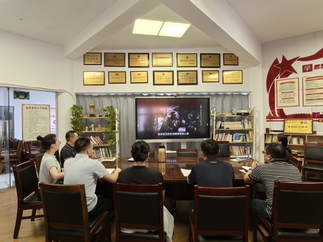 随后,全体参会人员集中观看了党员教育系列电视片《八秩荣光-江苏抗日根据地共产党人》——英名永驻刘老庄,重温抗战英烈光辉事迹,感悟共产党人初心使命,汲取奋进力量。