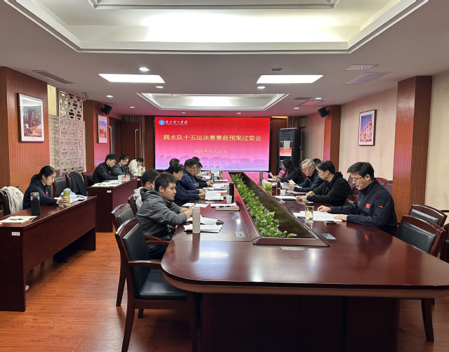 游泳学院副院长、跳水队领队刘洪磊汇报了队伍赛前整体情况以及到达赛区后的工作要点。跳水队一线主教练结合参赛目标,从重点人员和重点小项、主要对手分析、可能遇到的困难以及应对措施等方面进行了全面分析和汇报,副教练做了补充说明。