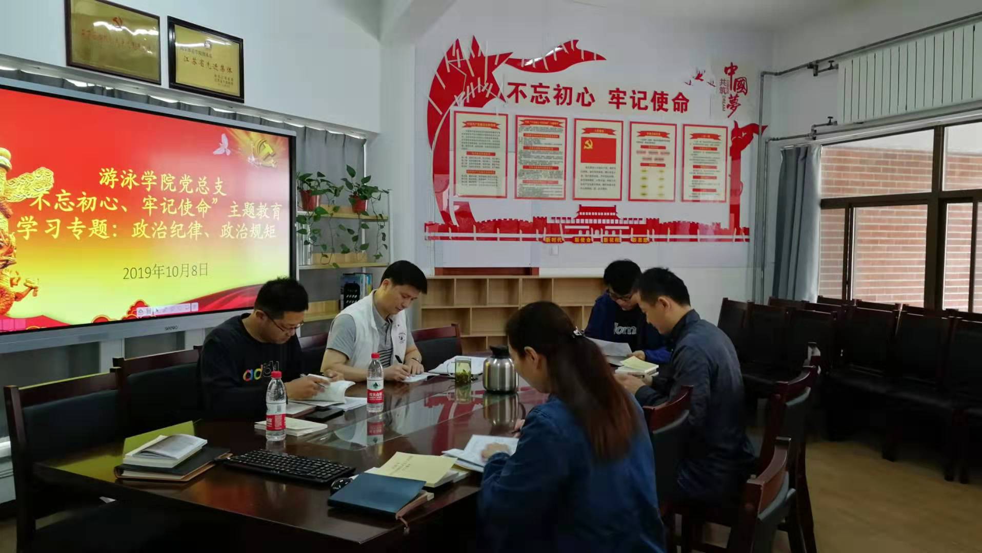 接着,游泳学院党总支全体委员对“政治纪律”、“政治规矩”专题学习的内容进行了研讨,联系自身工作交流了学习心得。
