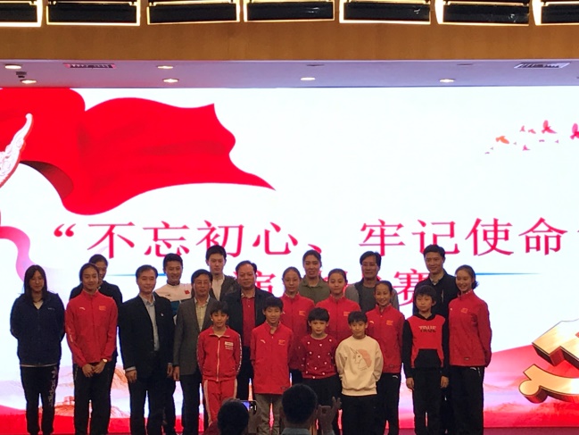 为了深入贯彻 “不忘初心,牢记使命”主题教育活动相关要求,结合观看70周年阅兵和《我和我的祖国》有感,加快推进游泳学院训练备战,提升队员综合素质。10月23日晚,游泳学院党总支开展了运动员“不忘初心,牢记使命”演讲比赛。校党委副书记、副校长史国生,校党委常委、总会计师黄步龙,校党委常委、组织部部长陆玉林,训练处处长丁习明出席演讲比赛并担任评委。游泳学院党总支书记、院长王伟新,副书记陈志以及游泳学院全体管理干部、全体教练员、全体运动员参加了活动。