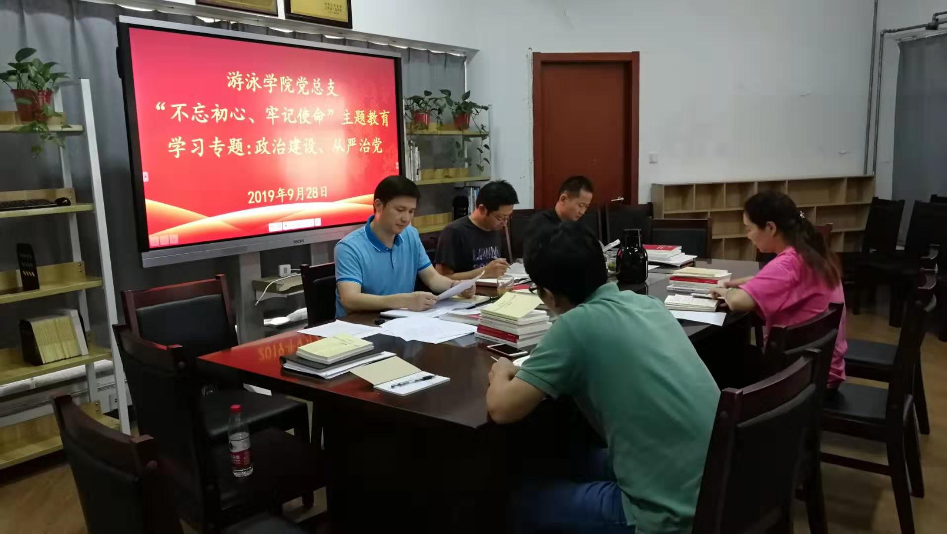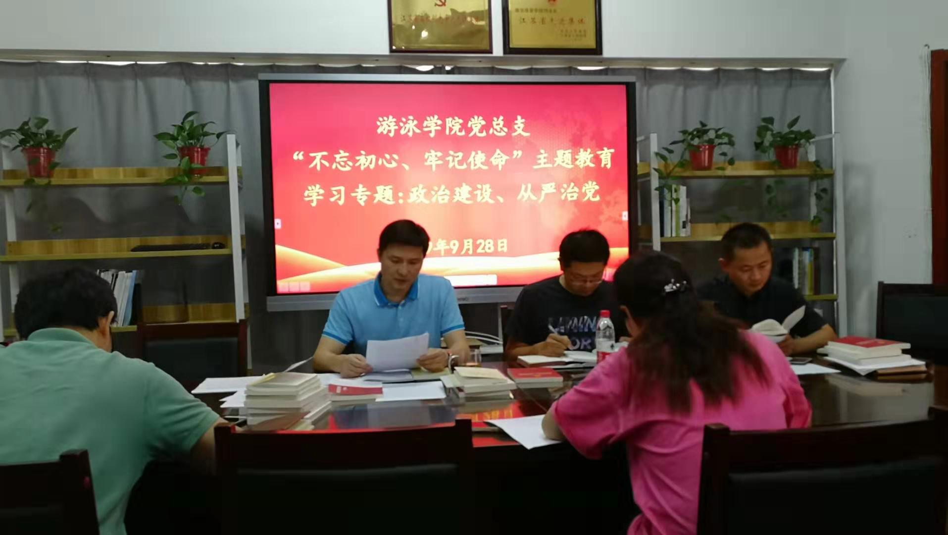 最后,游泳学院党总支全体委员对“政治建设”、“全面从严治党”专题学习的内容进行了研讨,联系自身工作交流了自己的学习心得。