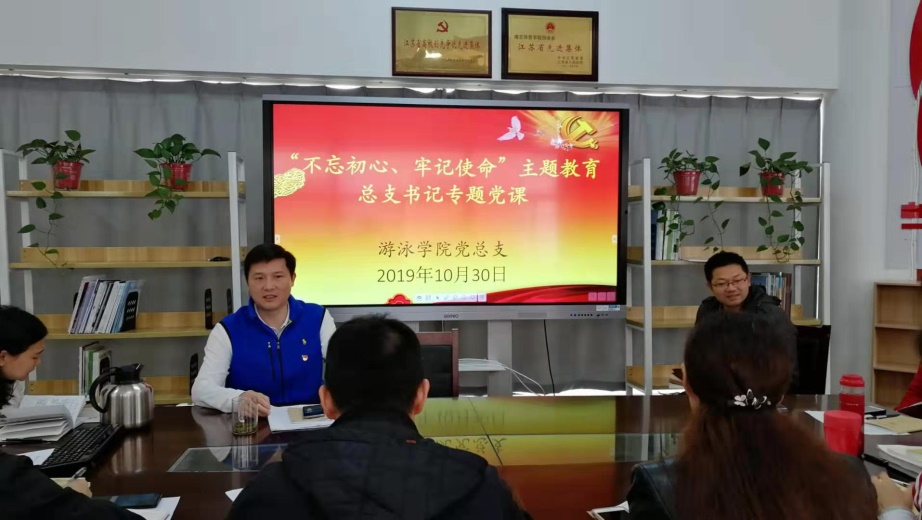 为了深入贯彻 “不忘初心,牢记使命”主题教育活动相关要求,加快推进游泳学院训练备战各项工作。10月30日上午10:00,游泳学院党总支全体党员在跳水花游馆二楼会议室召开“不忘初心,牢记使命”主题教育专题党课学习会,学院党总支书记、院长王伟新给游泳学院全体党员上了题为《增强党员意识,发挥党员作用,推动游泳学院高质量发展》专题党课。