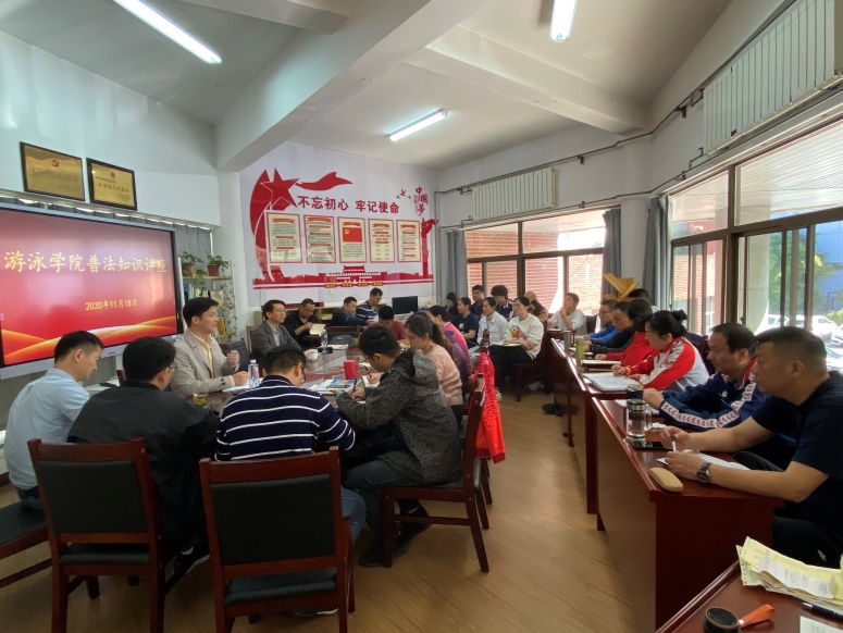 11月18日,游泳学院邀请江苏志邦律师事务所合伙人、民商部专职律师杨帆来院给全体教职工开展“学好用好民法典,做知法守法好公民”为主题的《民法典》普法知识讲座,游泳学院全体教职工聆听了讲座。