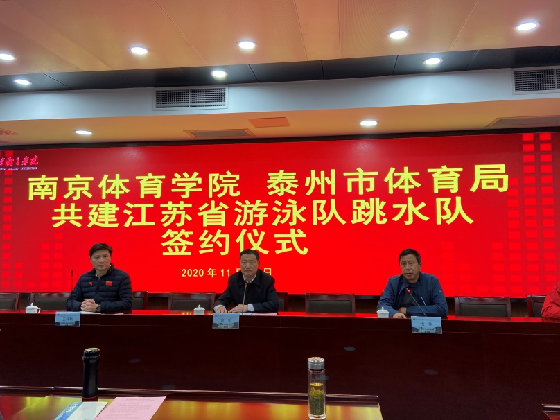 11月25日,missav与泰州市体育局“共建江苏省游泳队、跳水队”签约仪式在missav行政办公楼201会议室举行。