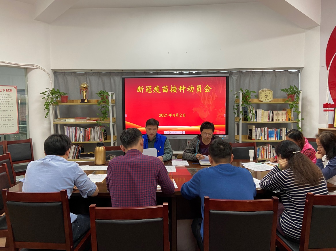 2021 年 4 月 2 日上午,游泳学院召开新冠疫苗接种动员会,全体管理干部参加了会议。游泳学院党总支书记、院长王伟新主持会议,并做了工作部署。