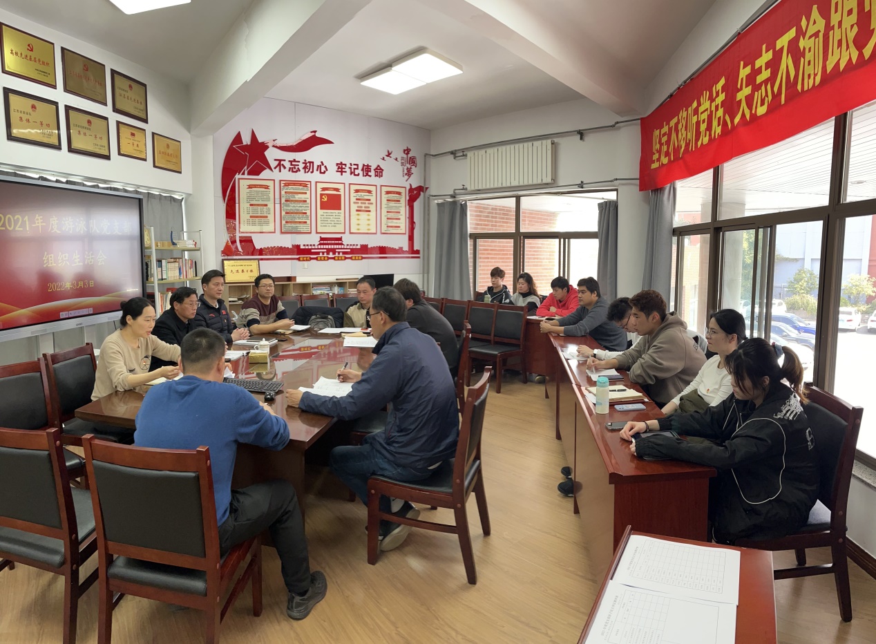 会前,按照学校《关于召开2021年度党支部组织生活会和开展民主评议党员的通知》要求,游泳队党支部结合年度各项工作实际,对2021年度组织生活会和民主评议党员两项工作进行了统筹安排,组织了专题学习,开展了谈心谈话。