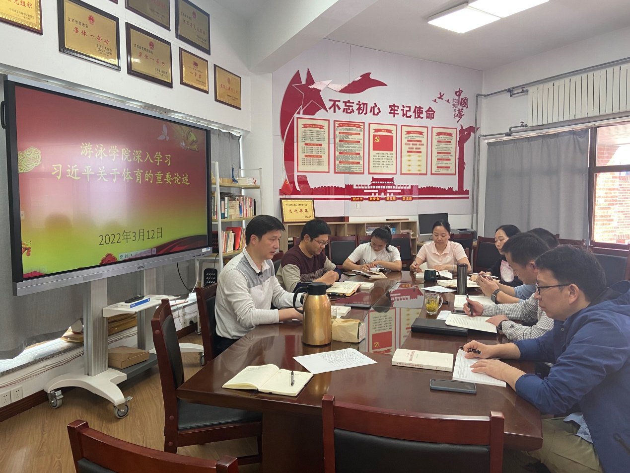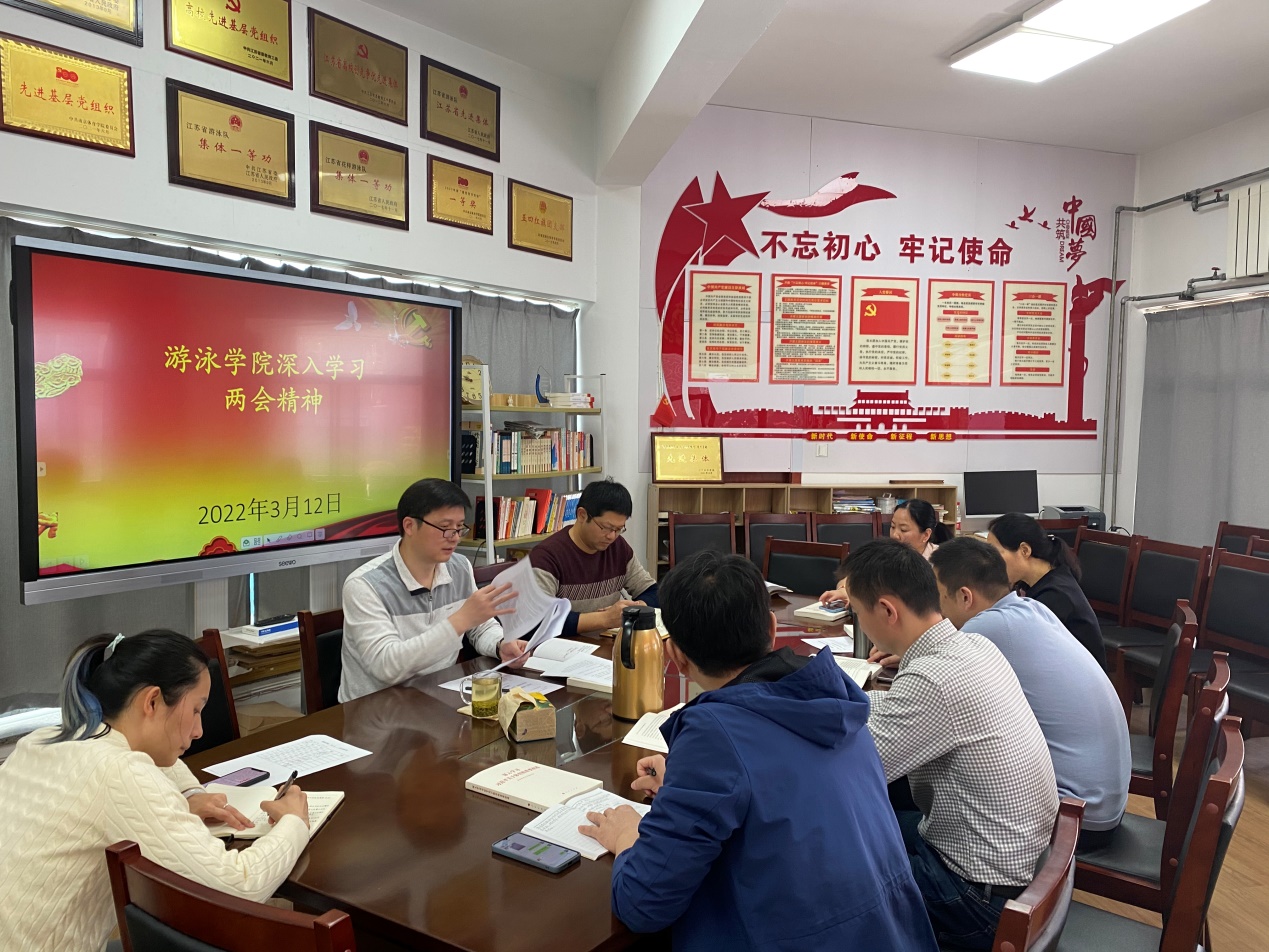 3月12日上午,游泳学院党总支召开会议,深入学习全国两会精神、习近平关于体育的重要论述。游泳学院党总支书记王伟新主持会议,游泳学院全体管理干部参加了会议。
