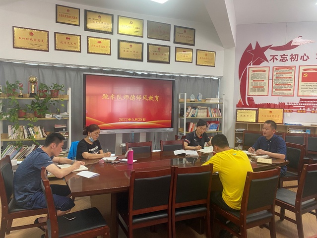 5月28日上午,跳水队在跳水花游馆二楼会议室召开师德师风学习教育会议,组织全体教练员认真、细致地学习了《新时代高校教师职业行为十项准则》、《关于高校教师师德失范行为处理的指导意见》等文件和近期《教育部公开曝光违反教师职业行为十项准则案例》。