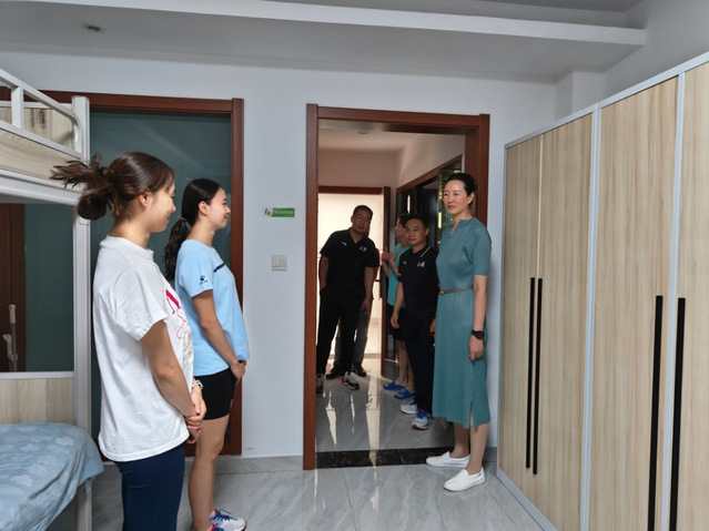 肖爱华一行先后来到运动员公寓、训练场馆等地看望慰问了花样游泳队全体在扬州转训的运动员、教练员和科医保障人员,与运动员进行了亲切的交流慰问,详细了解了运动员在扬州转训期间的训练、住宿、餐饮、交通和学习等方面情况,对运动员、教练员和科医保障人员战高温、斗酷暑,顽强拼搏的精神给予了肯定和赞扬,对扬州体育运动学校和扬州体育产业发展有限公司对花样游泳队扬州转训的支持和保障表示了感谢。肖爱华对花样游泳队的转训工作提出了要求、做出了部署:一要提高思想认识,确保安全训练。时刻绷紧安全这根弦,提高反兴奋剂工作责任意识,强化“纯洁体育”学习,外出转训和比赛期间,要及时进行行踪信息申报,严禁外出就餐;要合理安排训练强度,做好防暑降温工作,避免因训练事故导致的非战斗性减员。二要提升业务水平,确保科学训练。转训期间正值夏训,要利用好封闭训练的机会,科学制定夏训计划,加强世界泳联花样游泳新规则的学习,在吃透新规则、利用新规则、创新动作编排等方面下真功夫、下苦功夫。三要加强团队的协同配合,确保高效训练。夏训工作要坚持问题导向、突出目标导向,进一步查找问题、梳理问题清单,要坚持“强素质、补短板、提能力、上水平”的工作思路,进一步强化训科医管复合型团队的协同配合默契度和有效性,为接下来的学青会、全国一类赛和十五届全运会备战打下坚实基础。