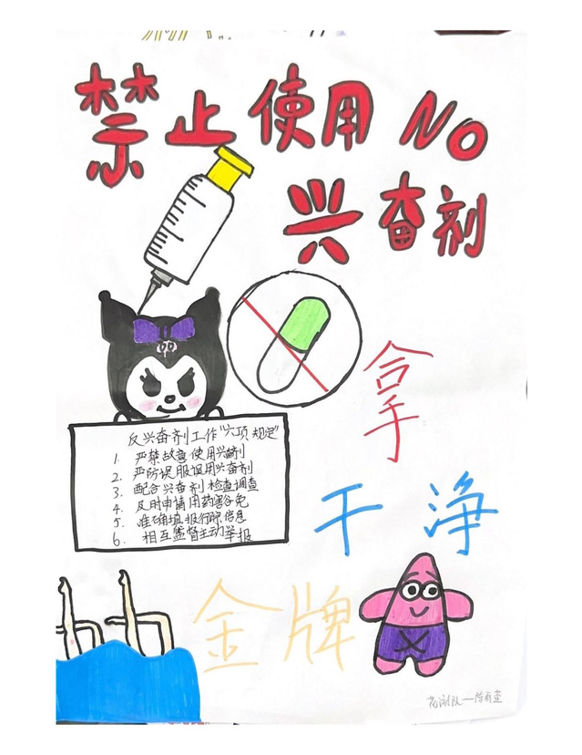 根据省体育局《关于举办第三届江苏省兴奋剂海报设计大赛的通知》的文件精神,结合学校部署安排,游泳学院认真落实相关要求,积极响应、广泛宣传,组织运动员将宣传反兴奋剂知识和发挥创作热情结合起来,踊跃参加海报设计大赛,全面提高运动员坚决抵制兴奋剂的自觉性。
