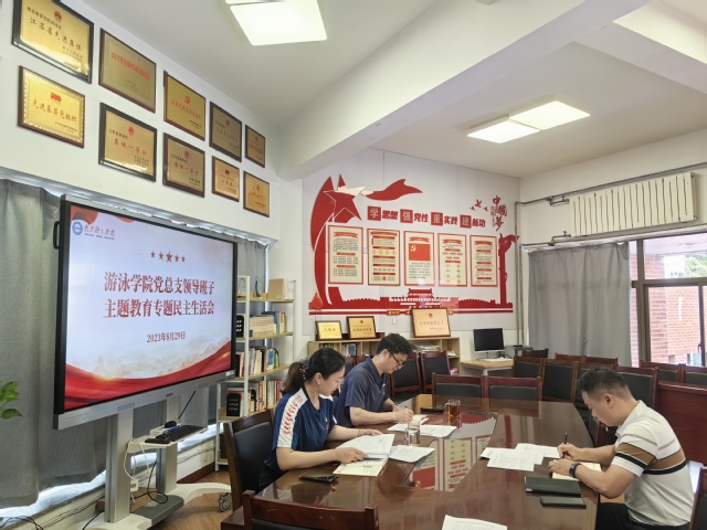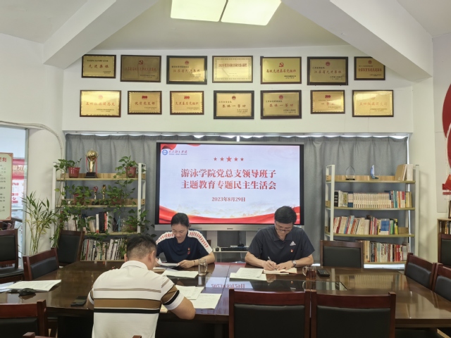根据校党委部署《关于开好2023年处级党员领导干部主题教育专题民主生活会的通知》要求,8月29日上午,游泳学院党总支在跳水花游馆二楼会议室召开学习贯彻习近平新时代中国特色社会主义思想主题教育专题民主生活会。游泳学院党总支全体班子成员参加会议。会议由游泳学院党总支书记骆晓娟主持。