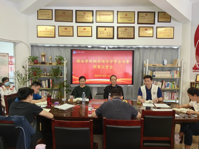 第一届学生(青年)运动会跳水项目决赛将于10月21日至28日在广西南宁举行,为进一步做好参赛工作、细化参赛方案,10月16日上午,游泳学院在跳水花游馆二楼会议室召开跳水项目学青会决赛预案过堂会。校训练与管理督察组专家任大新、袁紫娟出席会议,游泳学院党总支书记骆晓娟、跳水队管理干部、全体教练员和科医人员参加会议。会议由游泳学院院长王伟新主持。