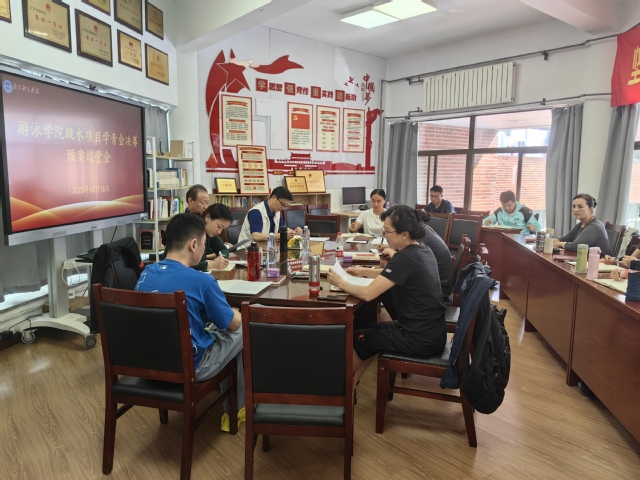 跳水队总教练徐洁详细汇报了本次比赛的分析预案,各组主教练依次从学青会参赛目标、重点队员重点小项、主要竞争对手、存在的问题和困难以及应对措施等方面进行了分析和汇报。